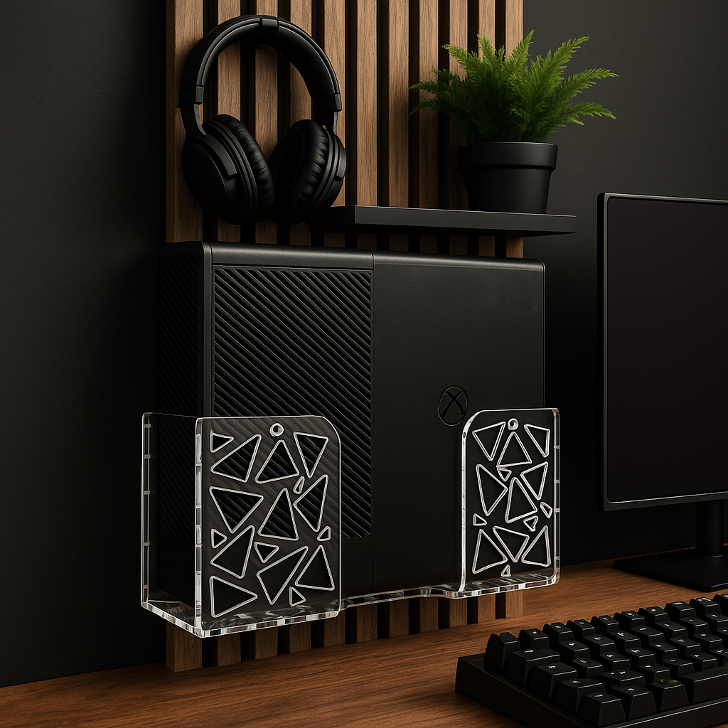 A heavy-duty, universal wall mount designed to safely secure your valuable gaming console while giving your gaming setup a clean, modern, and organized look. Built with high-strength materials and engineered airflow for maximum cooling performance.